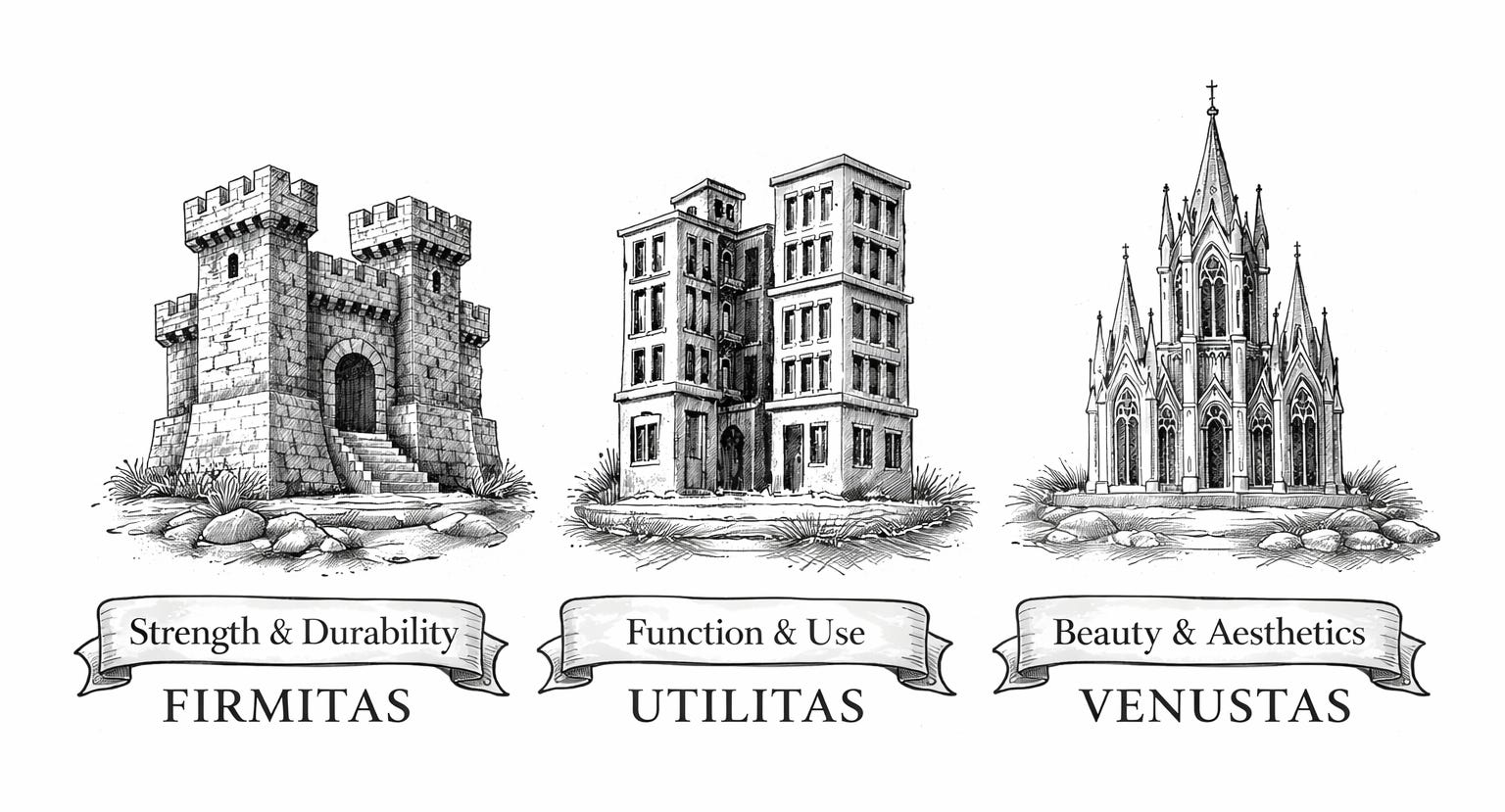 The first Vitruvian principle is firmitas (strength, durability). A well-designed structure must be stable and durable. It must withstand weather and time. Vitruvius emphasized selecting good materials that suit a building’s purpose as well as its location: durability “will be assured when foundations are carried down to the solid ground and materials wisely and liberally selected.”