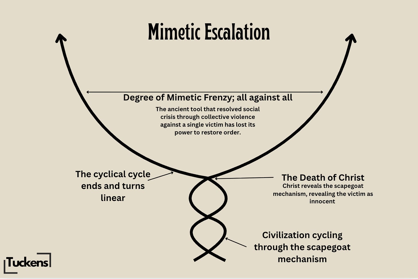 When the model of desire is close to us, similar to us, and competing for the same goods, desire escalates into rivalry, resentment, and eventually violence. Modern egalitarian societies intensify this by erasing the distance between people while multiplying models. In order to exit mimetic rivalry, we must transform our competitive desires into non-competitive desires, modeled on Christ. Girard’s solution is very clear; we must renounce violence, renounce zero-sum games, and refuse to be the model that is imitated.